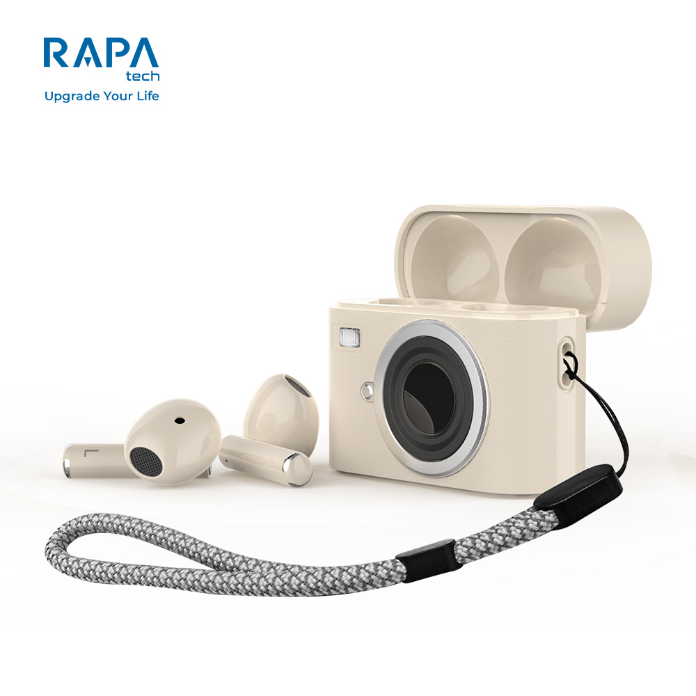 The charging case adpots the exquisite appearance of a camera, combining both aesthetics and strength. Its convenient lanyard design allows for comfortable, hands-free carrying.