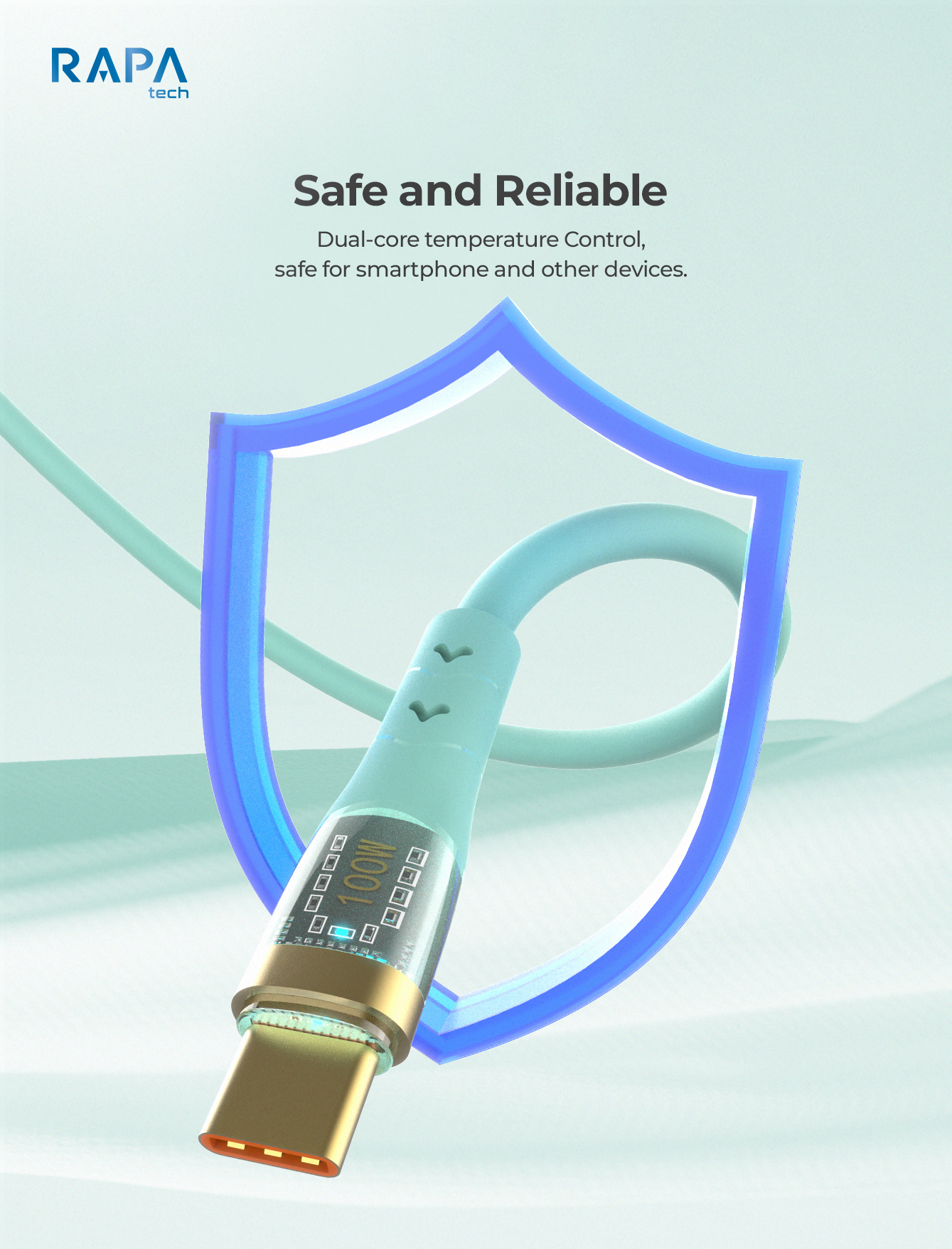 Compatible with smartphone and tablet with type-c interface. Support Quick Charging up to 5A (100w).