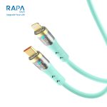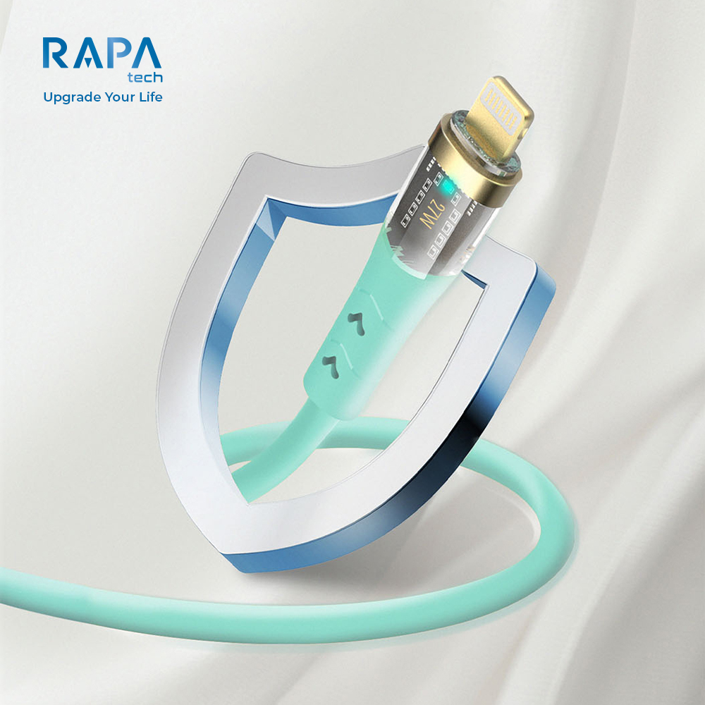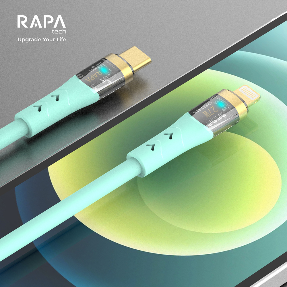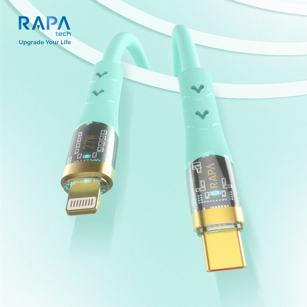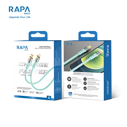 RAPA LINE CRYSTAL I USB-C to Lightning Cable 27WColor : ToscaUniversal CompatibilityCompatible with smartphone and tablet with Lightning interface. Support Quick Charging up to 27W.2-in-1 for Charging and Data Transfer Charge your devices and transfer photos, videos, music, and documents to your computer at up to 480Mbps.IC Smart Chiphas overvoltage protection, which is save for devices, it has automatic power off is charging voltage over more than 6V.200+ Precision Copper CoreWith pure copper core, fast conduction and stable trasmission.Safe and ReliableDual-core temperature Control, Safe for smartphone and other devices.Greaseproof and Sweatproof MaterialEasy to clean with wet wipes, not afraid to dirt resistance (be careful don’t touch the metal material when cleaning, recommended to wipe with a wet tissue).Gold-plated InterfaceAntioxidant and corrosion resistant, conduct electricity faster. Longer lifespan with more than 15.000+ plug-in test.*Tangle Free MaterialHigh elasticity soft rubber material, resists pulling and prevents breakage up to 10.000+ bend.Warranty and After Sales ServiceThe worry-free 24 months warranty, and friendly customer service that is ready to help our customer anytime, anywhere.*Base on internal testing