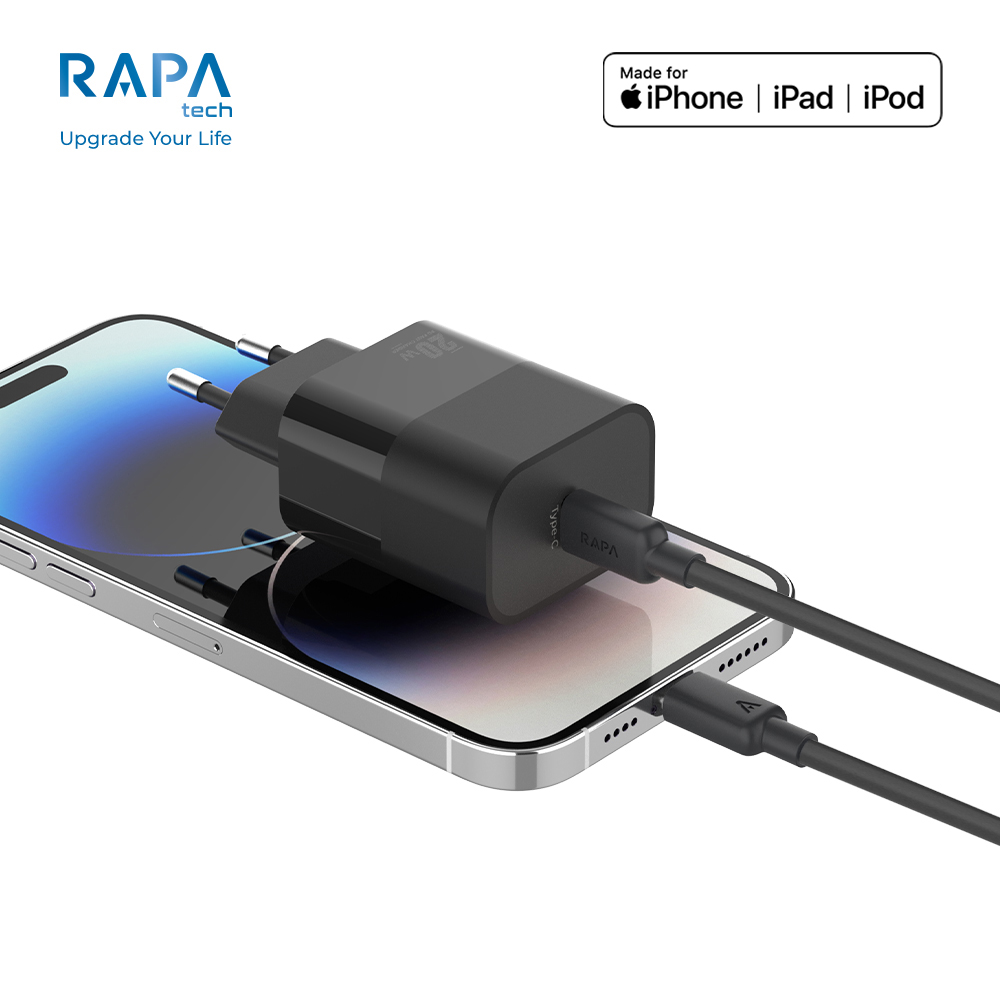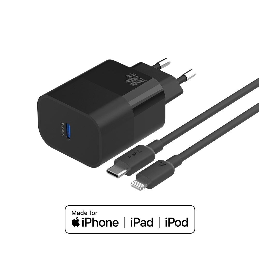 RAPA POWER II PD20W Charger with MFi Cable 27W – DC6064 Black